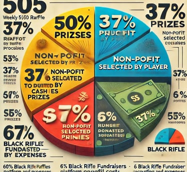37% Donated to Player-Selected Non-Profit: 37% of the proceeds are designated for the non-profit organization selected by each raffle participant when purchasing their ticket.